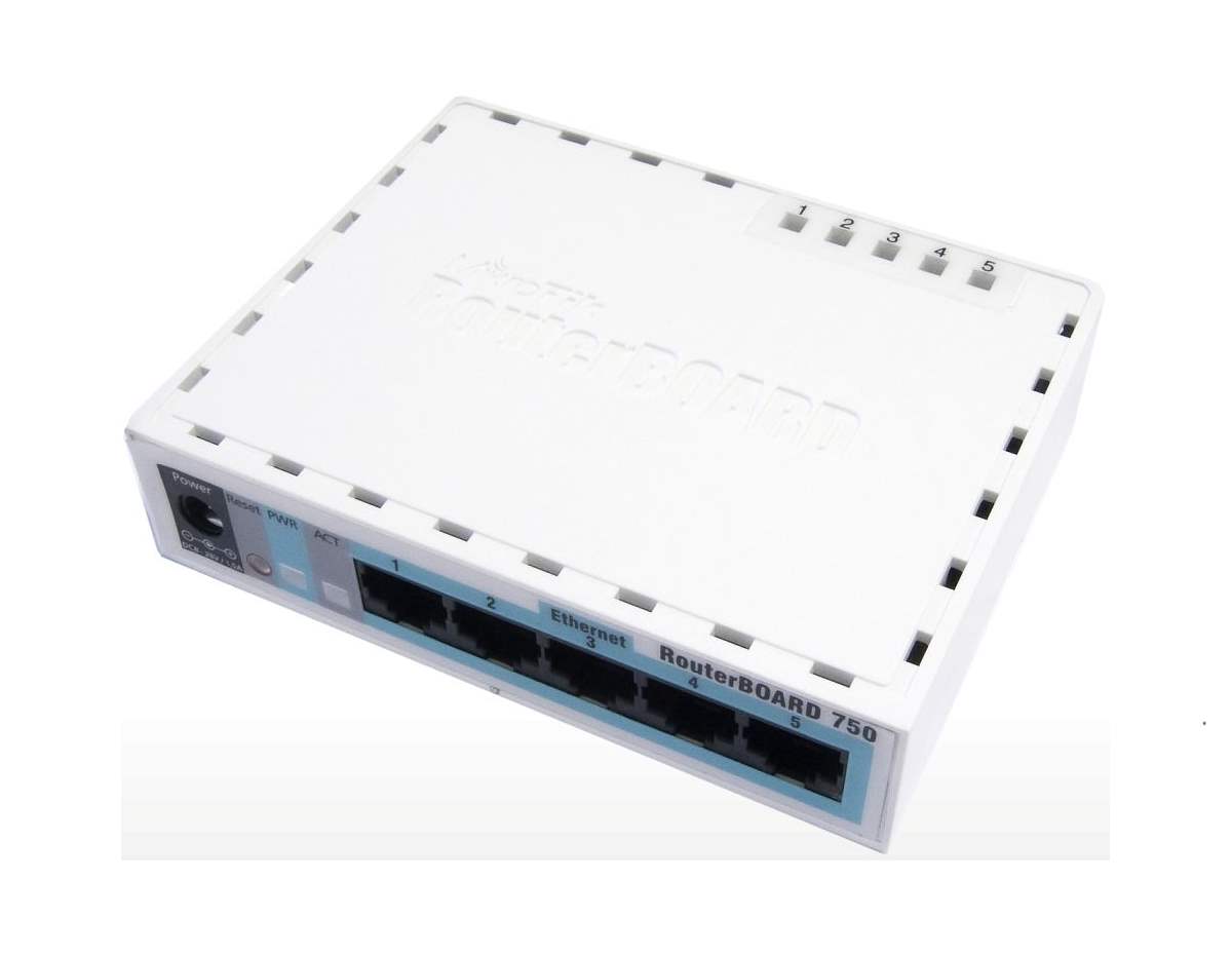 RB750 - компактный, производительный офисный пяти портовый 10/100 маршрутизатор. RB750 оснащен процессором Atheros AR7240 400MHz, встроенной оперативной памятью 32MB DDR SDRAM и встроенным чипом памяти NAND 64MB. RB750 - отличный SOHO маршрутизатор, подходящий для организации сети дома и в офисе, для объединения в одну локальную сеть удаленных офисов и филиалов.