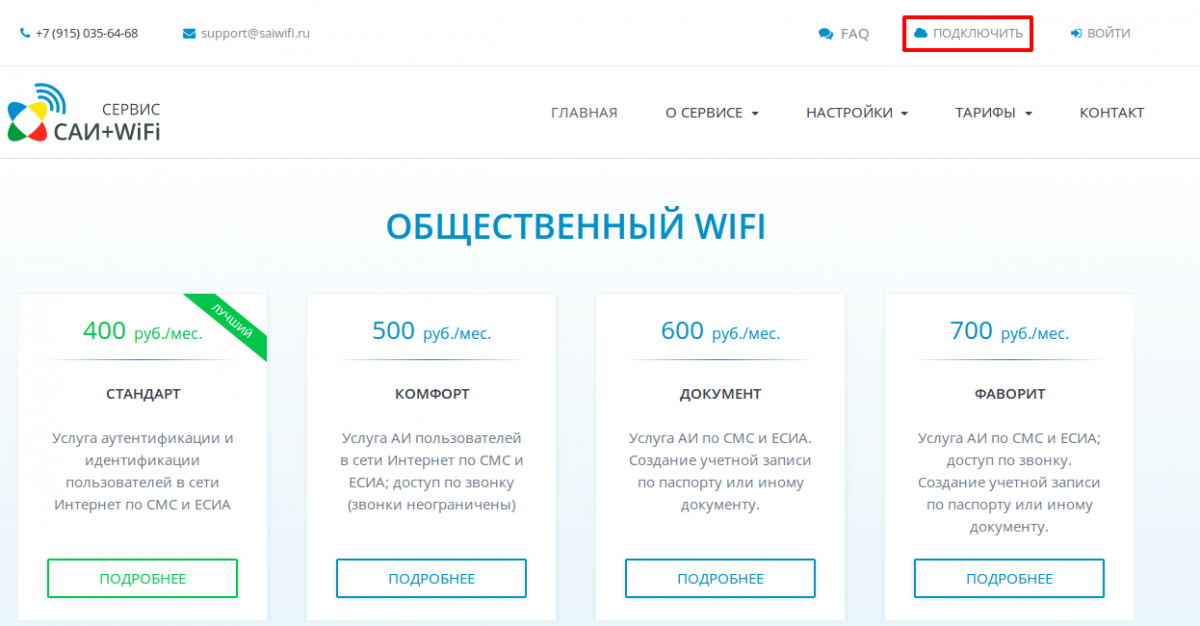 Общий перечень настроек для работы с сервисом САИ+WiFi