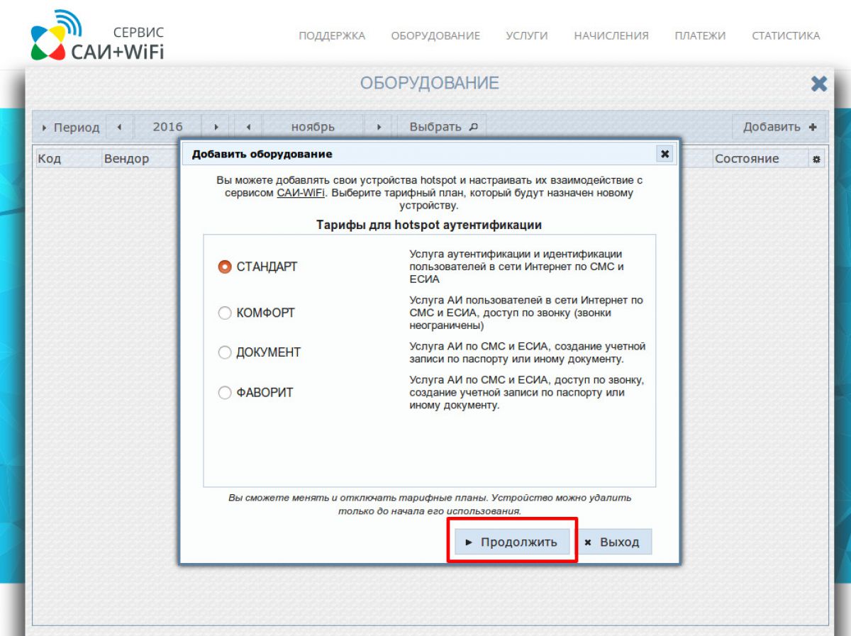 Для работы сервисом вам потребуется оборудование поддерживающие работу внешнего radius server и Hotspot.
